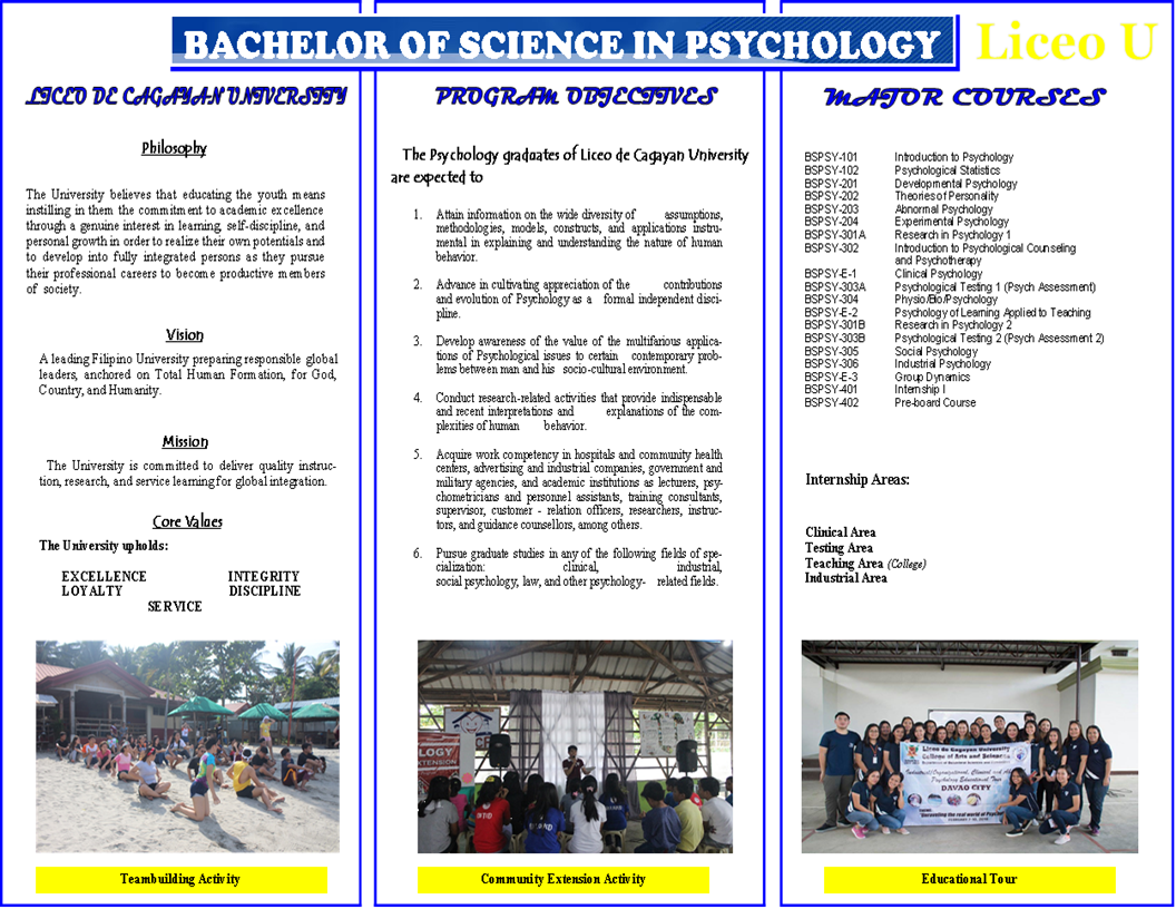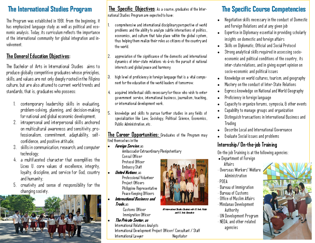 The BA in Communication is a 4-year degree program that equips students with knowledge and skills essential for conveying information to the public through print, broadcast, electronic, and digital media. The program offers courses that expose them to the theory and practice in journalism, TV and radio broadcasting, public relations, film making, advertising, and digital material designing, thus creating for the Communication graduates a wide range of job opportunities in the academe, media industries, business firms, government bureaus, and other work fields where communication experts play a crucial role for organizational success. To prepare the graduates for gainful employment, the program adopts the outcome-based approach to education, which facilitates the development and enhancement of students’ employability attributes, which are further enhanced through students’ hands-on training in reputable media-related workplaces.